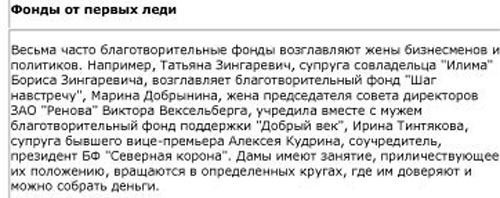 "В России существует целый ряд фондов, которые являются посредниками в сфере благотворительности и умеют организовать благотворительные акции для компании, - отмечает Наталья Самойленко, заместитель гендиректора Благотворительного фонда Владимира Потанина. - И роль профессионального посредника очень важна. Программы под заказ от компаний реализует, в частности, фонд "CAF Россия". Это крупная организация с британскими корнями, с ее помощью коммерческие структуры могут организовать разные социальные программы. К примеру, с "Крафт Фудс Рус" "CAF Россия" реализует образовательный проект "Будь здоров!" на территории Ленинградской и Владимирской областей, направленный на увеличение физической активности школьников. Разумеется, пищевой гигант, так же как и Nestle, учит их и правильно питаться.