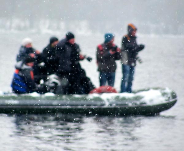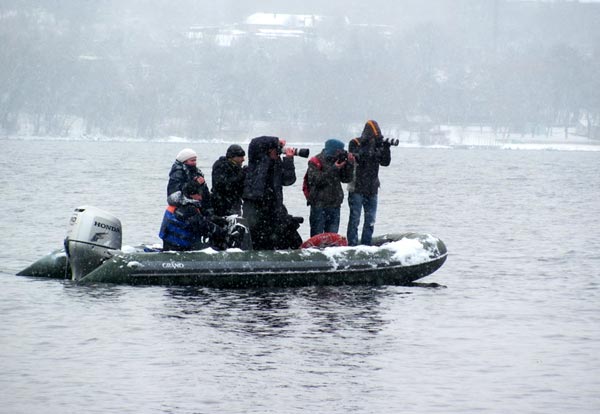 Не имея возможности зайти в воду в плавках - фотографы запорожских СМИ покорили реку более хитрым способом...