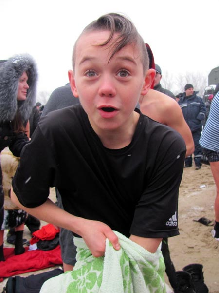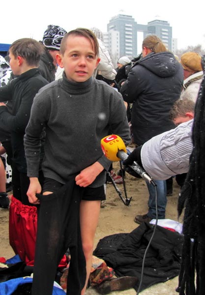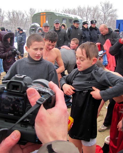 Как купался мэр мы так и не увидели, но и других замечательных личностей было вокруг немало! Около трех тысяч запорожцев, не меньше, пришли на пляж в середине января ;)