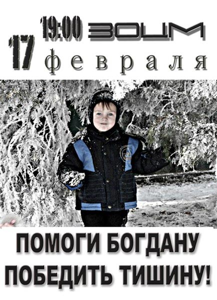 P.S. Вход бесплатный. В зале будут работать волонтеры акции. Каждый сможет помочь Богдану согласно своим возможностям.