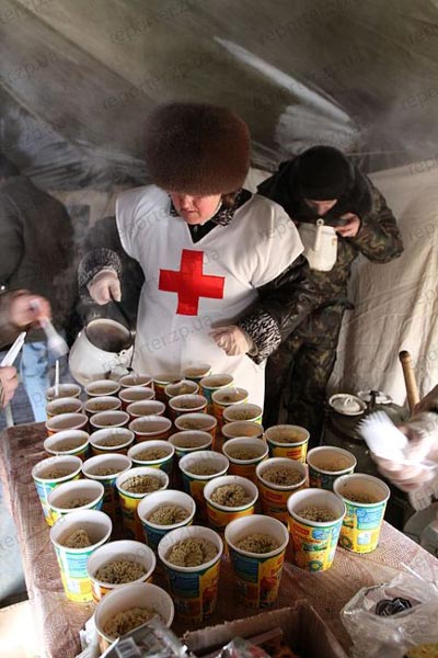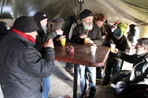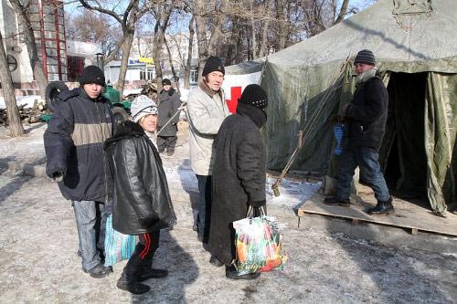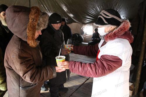 В Запорожской области с 26 января действуют пункты обогрева и горячего питания, организованные службой МЧС совместно с обществом Красного Креста. В лютые морозы все нуждающиеся могут здесь обогреться, съесть горячую мивину с сухариками, выпить горячего чаю. Те, кому некуда больше идти, могут остаться в пункте обогрева на ночь. Например, ночевать в палатке в районе Малого рынка в Запорожье остается около 15 человек. Среди бездомных — бывшие заключенные, которых родственники выгнали из дома, беременные женщины, целые семьи бомжей и даже беженцы из Армении...