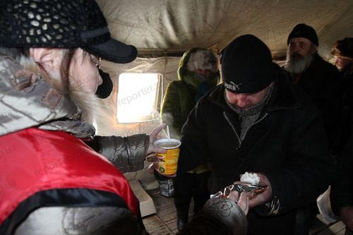 Немаловажно отметить, что запорожцы помогают бездомным и материально. Свидетелями этого как раз и стали корреспонденты "РепортерUA". Один мужчина, даже не заходя в палатку, передал 50 гривен. Рассказывать что-то о себе он не захотел.