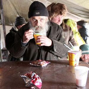 -Не первый год мы занимаемся кормежкой, и за это время в этом пункте образовалось определенное сообщество со своими взаимоотношениями. Есть несколько постоянных человек, около 7 бездомных, которые в пункте сейчас живут. Вот они перед кормежкой помогают проветривать палатку, убирать территорию, собирать дрова, - рассказала психолог Красного Креста Марина Арабаджин.