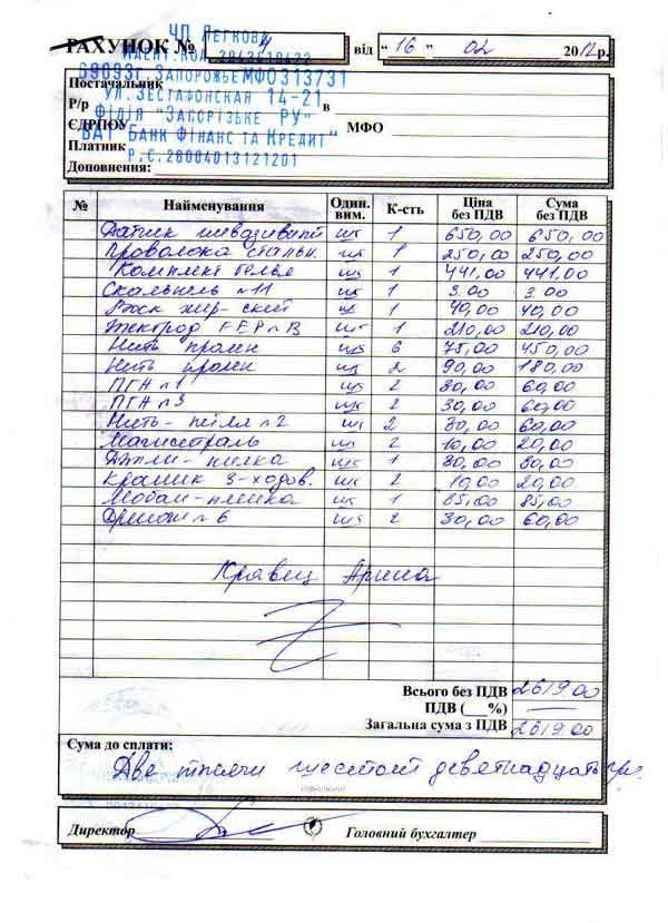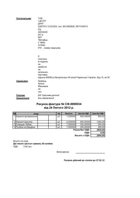 2600 грн. – расходные материалы для перфузиологии-анестезии (Счет-1).