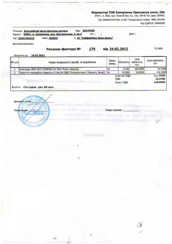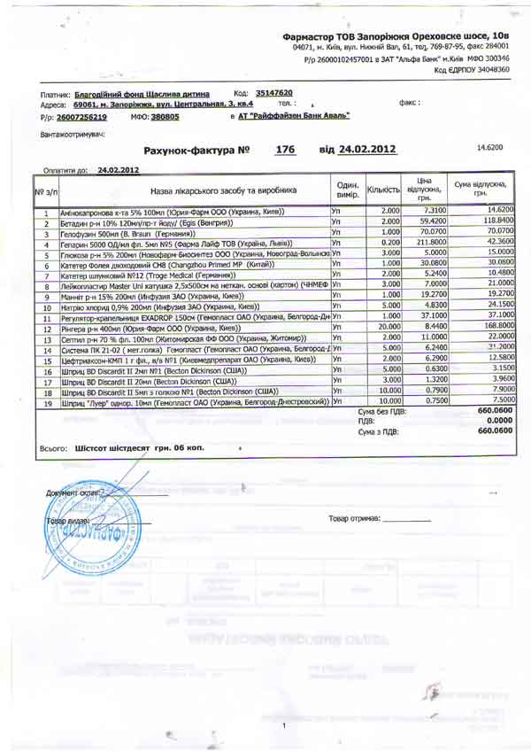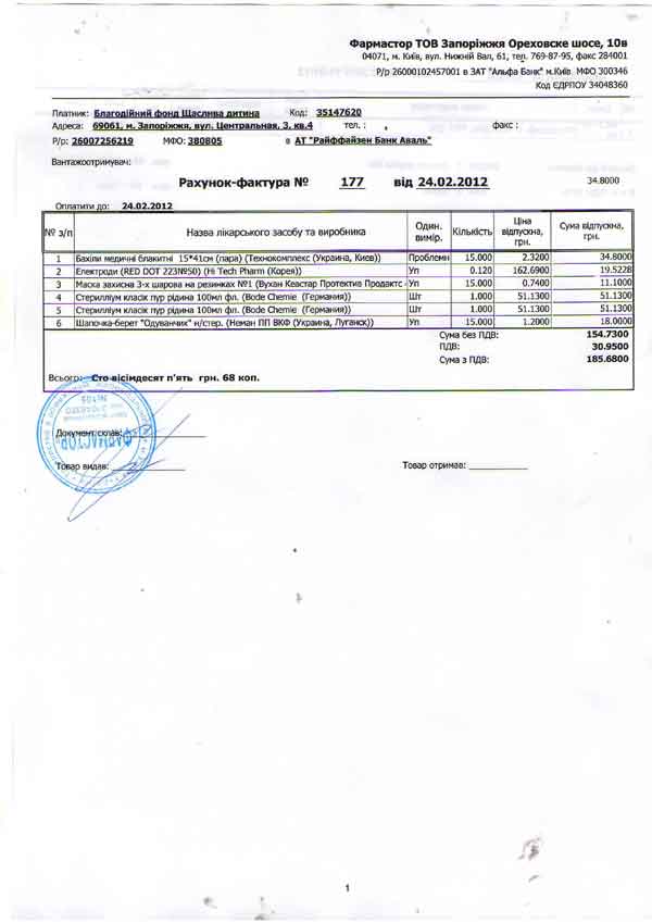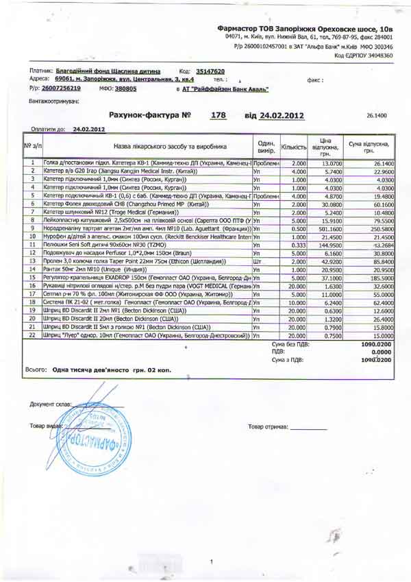 2075 грн.– лекарства для операции и реанимации (Счет-2, Счет-3, Счет-4, Счет-5);