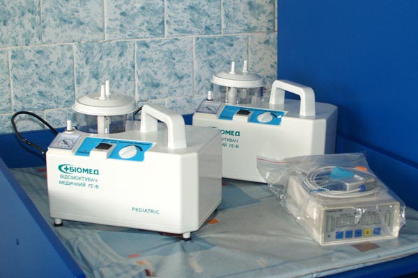 Не менее важными в этом отделении являются и электроотсасыватели. Детки тут не могут откашливаться, многие не могут глотать. А значит слюну, мокроту и т. д. нужно удалять искусственно. В идеале, на каждую реанимационную койку должен быть один электроотсасыватель и еще пара запасных. Увы, реальность далека от идеала… Но теперь, с купленными нами двумя отсасывателями, персоналу отделения станет немного легче, а качество оказываемой детям помощи хоть немного, но повысится.