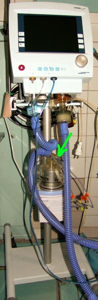 Обязательный компонент дыхательных аппаратов любых производителей, без которых аппарат работать не может. Без них ИВЛ находится, как в данном случае, в коридоре.