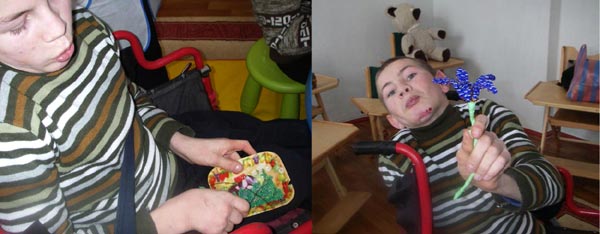 Леше нравиться нанизывать бисер. Он с трудом удерживает в руках ложку, его движения резкие и неуклюжие. Голова всегда склонена немного набок. Но в классе, когда воспитатель ставит перед ним тарелочку с бисером и вкладывает Леше в руку леску, происходит чудо. Невозможно поверить в то, что происходит потом. Леша нанизывает бисер. Бусинку за бусинкой. Его лицо приобретает невероятное выражение. Он вкладывает душу в этот цветок, каждый лепесток которого он сплел сам! Сколько гордости в его глазах! «Я сам это сделал! Я сумел! Посмотрите на меня – я могу это сделать!»
