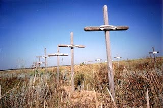 При въезде в Калиновку мы увидели кладбище – 400 детских могил – жуткое напоминание о том, что ежегодно здесь умирает 10 % детей – настолько серьезны их заболевания …