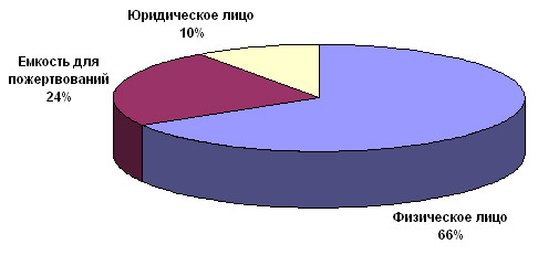 Распределение пожертвований по типам жертвователей за 2012 год: