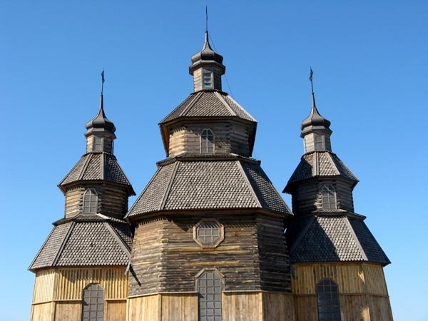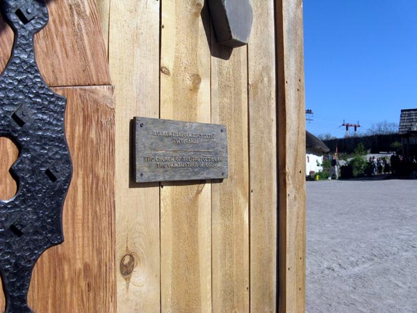 Сечевые казаки на фоне церкви Запорожской Сечи