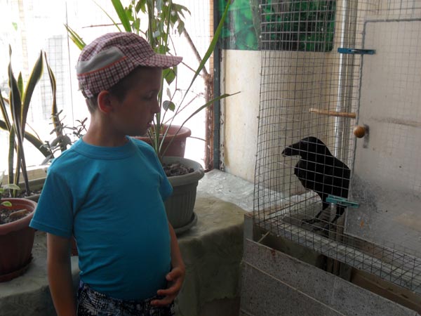 Но попугайчики не так интригуют любопытных ребят из Калиновки, как гордый черный ворон, а потому каждый норовит засунуть пальцы в клетку и каждый получает от ворона по заслугам.