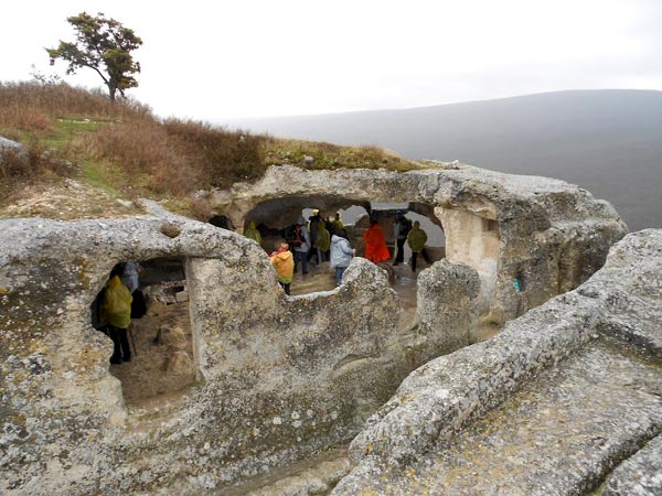 По пути к древним городам мы поднимались, вдыхая чистый воздух! На территории древнего города Эски-Кермен все еще осталось много каменных жилищ, в которых мы прятались от вдруг нахлынувшего дождя. Неподалеку от Мангупа на озере мы имели возможность погреться у костра. А ночевки были на туристической базе в селе Ходжи-Сала, в котором находится страусиная ферма.