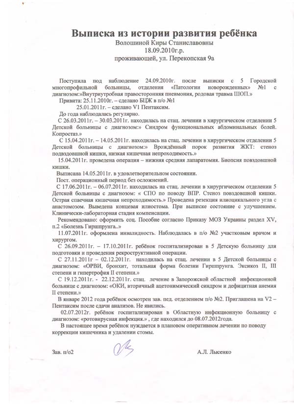 C того момента как родители Киры Волошиной обратились к нам, и ждали своей очереди на операцию малышка успела уже 4 раза побывать в больнице, все по причине своего заболевания. В последний раз, когда Кирочка лежала в больнице ей была проведена инвагинация (вправление) толстой кишки.