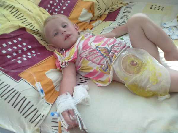 15.10.13 г. была проведена очередная операция, малышке сделали из одной части тонкого кишечника резерв, который будет выполнять функцию толстого кишечника (всасывать все полезные компоненты и жидкость).