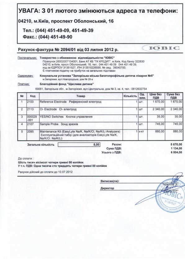 Медицинское оборудование – непопулярная статья расходов фонда. Лето – вялая пора, когда сборы обычно падают. И выложить за неожиданный ремонт анализатора электролитов почти 7 тысяч грн.. мы были не в состоянии. Фирма пошла нам на встречу и согласилась подождать оплаты. Месяц, два, три… Она согласилась провести ремонт аппарата в долг, под наши гарантии, что мы в итоге оплатим их работу. И мы пообещали… И они починили анализатор. И теперь реаниматологи и многие другие врачи больницы могут снова полноценно работать. Только мы по-прежнему не знаем, чем расплатиться с фирмой, проводившей ремонт. И как всегда просим вашей помощи в этом деле! Да, это абсурд, что сейчас благотворительный фонд должен фирме деньги за ремонт важнейшего больничного оборудования. И мы будем поднимать этот вопрос и пытаться найти системное решение проблемы. Но это дело не одного дня. А сейчас нам нужно отдать этот долг в 6804 грн (Счет). Пожалуйста, помогите нам в этом!