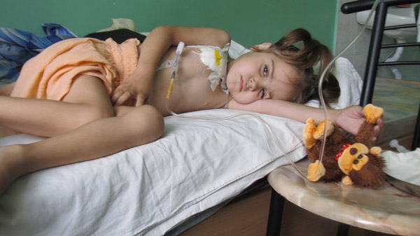 Сегодня я была в «гостях» в палате у маленькой чудесной девчушки Женечки. Столько доброты, искренности и чистоты от общения давно я не получала. Жене совсем скоро исполнится пять лет, хотя выглядит она совсем крошечной и миниатюрной. Но стоит взглянуть в ее глазки и сразу же понимаешь, что она куда взрослее своих пяти лет. Женечка говорила со мною еле слышно, тихо-тихо, каждое слово давалось ей с трудом - сильный кашель мешал нашему общению и забирал массу сил. Она рассказала про то, что когда вырастет, очень хочет стать «врачом зверей», что у нее дома сейчас живут рыбки, две черепашки и попугайчик. Женя очень любит рисовать в разукрашках, а особенно когда мама рисует вместе с нею. Еще она потихоньку учит буквы и уже умеет хорошо считать до десяти, с нянечкой они часто читают букварик и учат буквы.