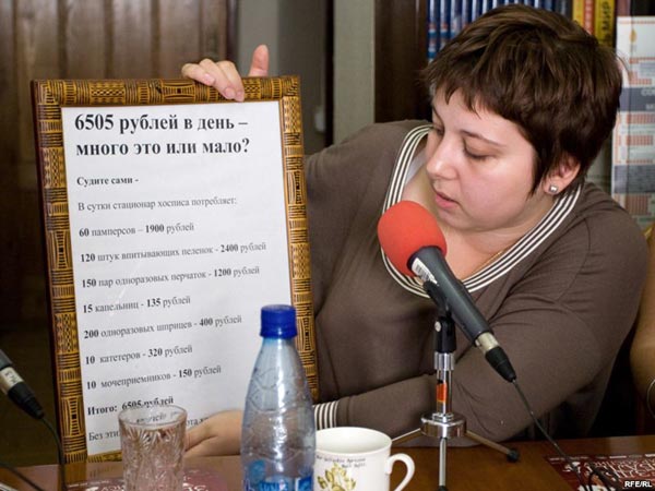 Нюта Федермессер: В общем, действительно, если коротко, то нужны нам деньги. Расчетный счет хосписа и Фонда находится на сайте. Но специфика работы хосписа и работы Фонда состоит в том, что у нас огромный процент просветительской работы, для того чтобы в обществе менялось отношение. Можно помогать разными вещами, не только деньгами. А если начнешь помогать, благотворительность устроена так, что если туда краешком пальца влезешь, то уже не вылезешь никогда. У огромного количества людей мало денег или нет денег. В нашем обществе многие думают, что помогать деньгами - ну, это надо быть олигархом, владельцем, как минимум, нефтяной скважины. Но это не так. Мы посчитали, есть такая цифра - 6 тысяч 505 рублей - это сумма, в которую обходится Фонду существование одного дня стационара Первого московского хосписа. 6 тысяч 505 рублей - это 60 памперсов, 120 штук впитывающих пеленок, 150 пар одноразовых перчаток, 15 капельниц, 200 одноразовых шприцев, 10 катетеров, 10 мочеприемников. Соответственно, можно увидеть, что 10 мочеприемников - это 150 рублей, а один мочеприемник - 15 рублей. Если человек может пожертвовать 15 рублей, он уже улучшает жизнь конкретного пациента.