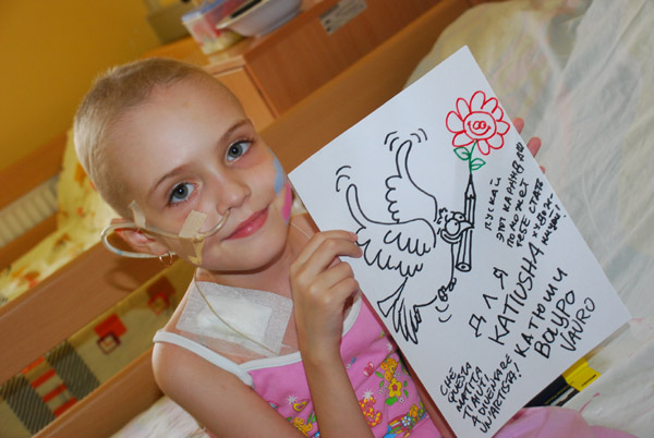 Известный итальянский художник-карикатурист Вауро Сенези, посещая маленьких пациентов в Институте рака и узнав, что маленькая Катя мечтает стать художницей, предложил, чтобы они обменялись рисунками, которые создадут одновременно. Красные маки Катюши теперь висят в римской мастерской художника, а волшебный карандаш Вауро должен обязательно принести девочке успех.
