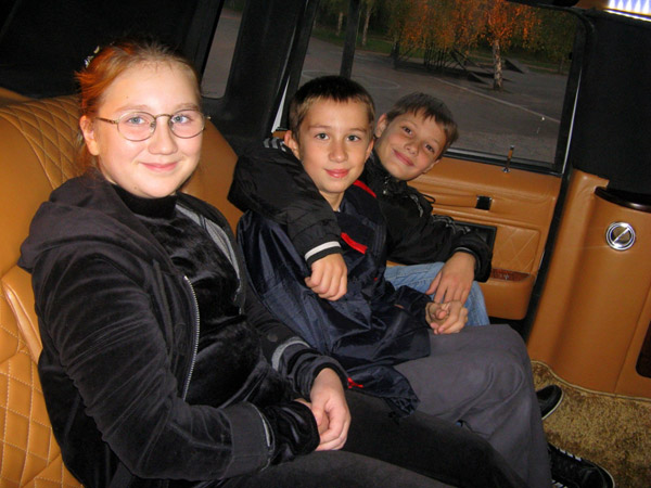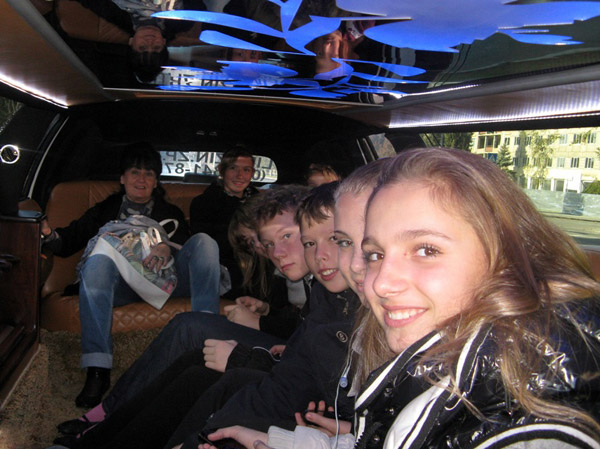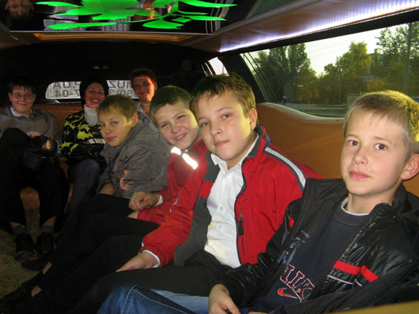 Принять участие в поездке смогли 35 ребят шестых и седьмых классов, а также их руководители. Очутившись в современных салонах Крайслера (Chrysler C300), Линкольна (Lincoln Town Car), Джипа Линкольн Навигатора (Lincoln Navigator) и уникального Ретро Роллс-Ройса (Rolls Royce Retro), выполненного в стиле 30-х годов, каждый смог почувствовать себя персоной уровня «VIP». Кожаные сиденья, открывающийся люк, зеркальный потолок, светящаяся разноцветная неоновая подсветка придавали поездке особый неповторимый шарм. Царила праздничная атмосфера. Приятно было наблюдать за тем, как искренне смеялись и радовались дети. Всё время в пути ребята были в неописуемом восторге, и, казалось, до конца не могли поверить в то, что всё происходящее с ними - не сон. Бесспорно, такая прогулка запомнится надолго!