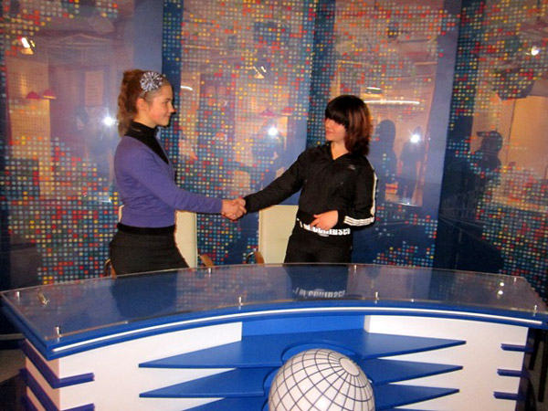 Не оставила равнодушными ребят и профессия телеведущих. В каждой студии они присаживались на место ведущего программы и представляли себя в его роли. При этом их переполняли эмоции, и конечно, для каждого было важно сфотографироваться на фоне студийных декораций.