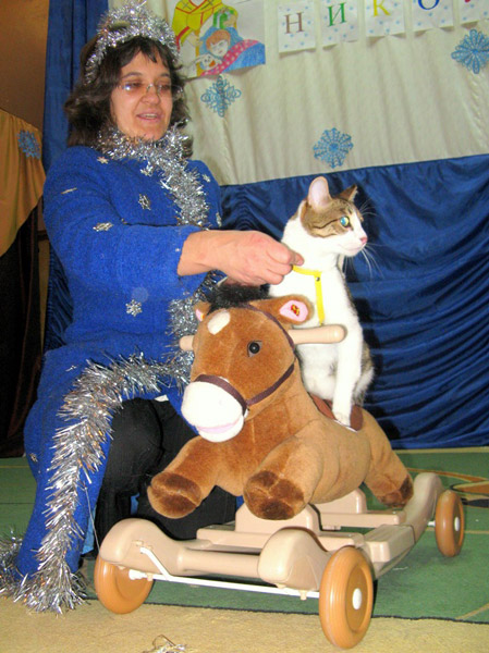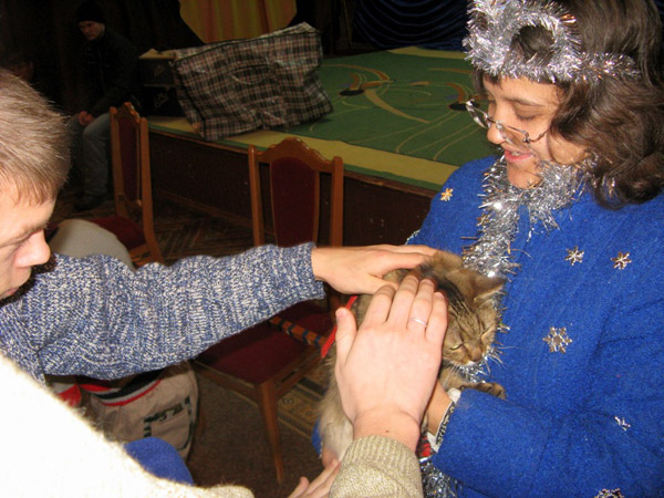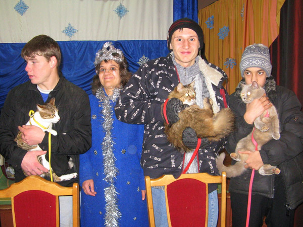В канун Нового года помочь ощутить тепло и ласку домашних питомцев воспитанникам Запорожского детского дома-интерната для мальчиков с ограниченными возможностями предложила семья Стрижевских. Мать Ирина Петровна и дочь Екатерина дрессируют своих шесть замечательных пушистых котов с 2002 года, с которыми, по возможности, выезжают участвовать в различных конкурсах и телевизионных шоу. Так, к примеру, Стрижевские были дважды участниками украинского развлекательного шоу «Україна має талант», транслируемого на канале СТБ. Чтобы попасть на эти кастинги, котики «путешествовали» в такие большие города, как Днепропетровск и Киев.