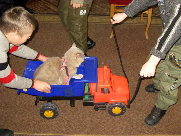 Благодаря откликнувшемуся волонтёру Игорю, который 22 декабря отвёз дрессировщиц с котами в детский дом, ребята смогли полюбоваться выступлением забавных животных, погладить своих новых усатых друзей и даже немножко с ними поиграть.