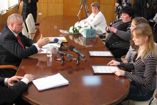 Дівчата прийшли до керівника області теж не з порожніми руками: Агнія намалювала йому картину, а десятирічний Сашко, коли почув, що мама з сестрами їде до Олександра Пеклушенка, за 40 хвилин встиг намалювати для нього чудовий малюнок.