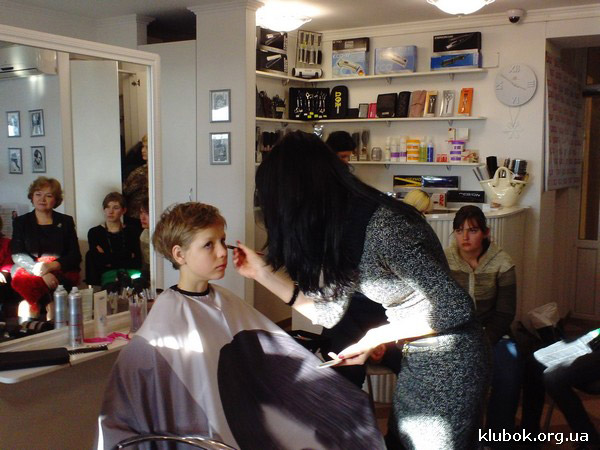 Директор центра Светлана Соколова очень интересно рассказывала о профессии парикмахера, о перспективах, о современных тенденциях парикмахерской моды, отвечала на многочисленные вопросы, давала очень ценные рекомендации по уходу за волосами и внешностью. О визажном искусстве поведала визажист Екатерина. Моделью мастер-класса была Настя из Вольнянского интерната, которая из маленького неуверенного птенчика буквально превратилась в настоящую леди с величественной осанкой и красивой улыбкой.