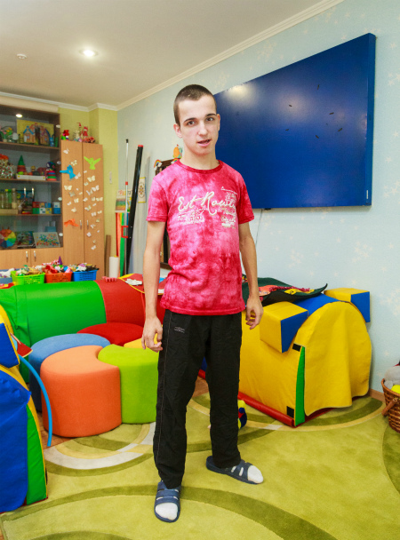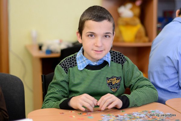 Мальчик любит рассматривать книжки – может показывать на одну и ту же картинку много раз подряд, пока ему не надоест. А запас терпения для того, что ему интересно, у него безграничный. Например, он может часами собирать один и тот же пазл. Вообще, все пазлы, которые привозят в интернат, обязательно проходят через его руки – то есть он один из немногих, кто все их сам собирал и собирает.