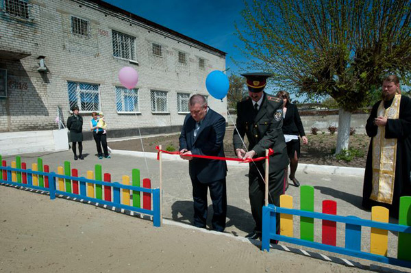 Традиционную ленточку перерезали начальник управления ГПтС Украины в области Александр Крикушенко и начальник СИЗО Олег Козич, а настоятель храма блаженной Ксении Петербуржской отец Дмитрий освятил детскую площадку.