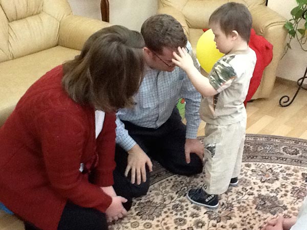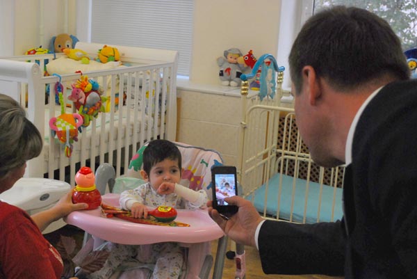 Четырехлетний Виталик знакомится с американцами Дженни и Аароном Мойерами, которых ему представили как маму и папу. Октябрь 2012 г.