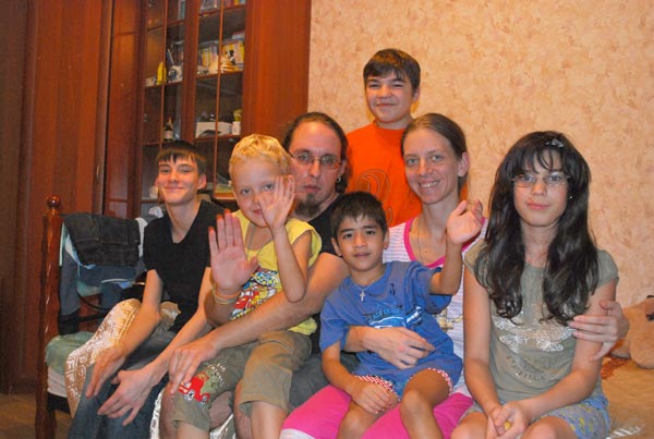 Юля и Олег Шульдешовы и их пятеро детей (Марат — второй справа) в Москве. Ноябрь 2013 г.