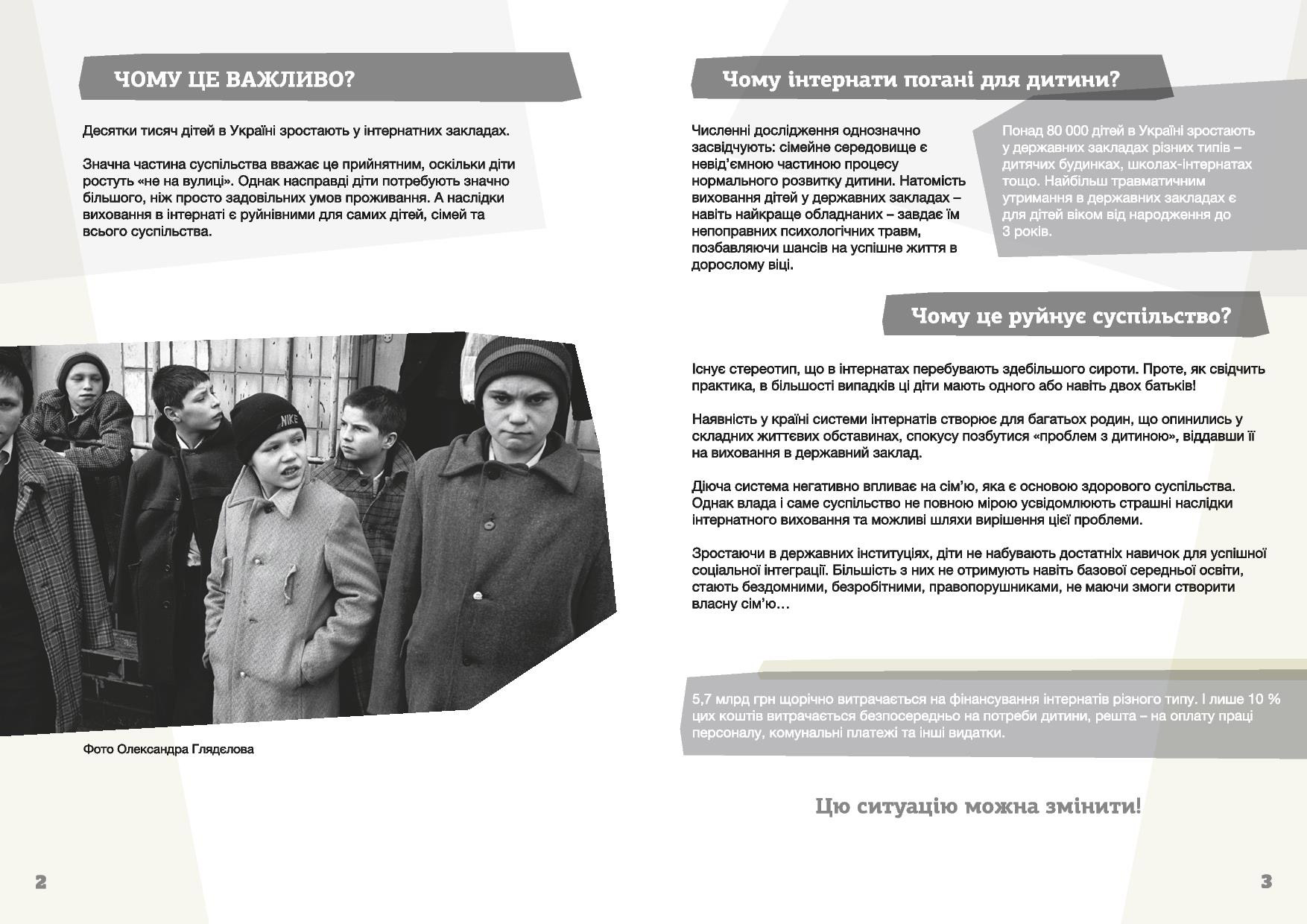 • покращити обізнаність суспільства про шкідливий вплив інтернатів на дітей та існуючі альтернативи;
