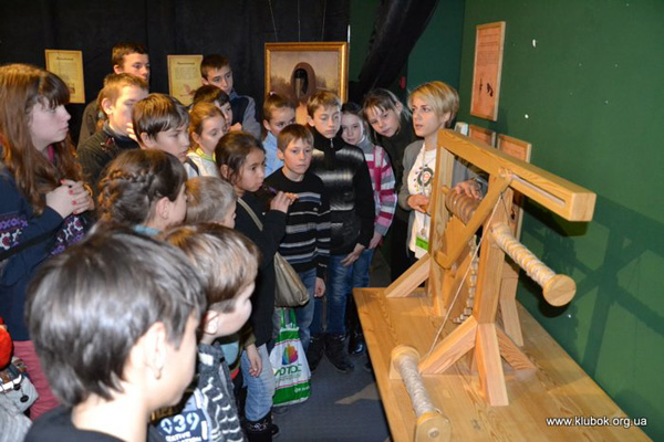 С утра ребята покатались на фуникулере, сфотографировались на фоне Михайловского и Софийского соборов. Затем мимо Андреевской церкви спустились на Подол, в район Контрактовой площади. Неподалеку отсюда расположен увлекательный музей для детей и взрослых – «Экспериментаниум». Здесь мы провели почти три часа. Особенность этого музея в том, что все экспонаты можно трогать руками, испытывать, наглядно изучая физику, химию, физиологию. Кроме основной экспозиции, ребята посетили выставку «Механика эпохи возрождения», где познакомились с изобретениями Леонардо да Винчи.