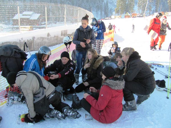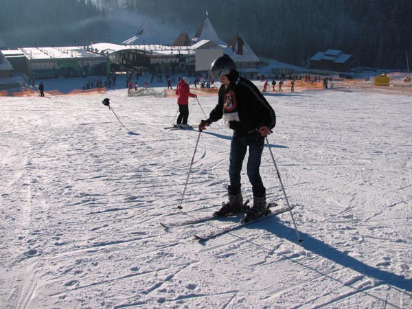 День третий. Сегодня решаем брать на прокат не только лыжи, но и ски-пассы. Это оказалось удовольствие не из дешевых, поэтому делимся друг с другом ски-пассами и катаемся на подъёмниках по-очереди. Дааааа! Подъёмник хорошая вещь! Больше не надо тратить время и силы, что бы подняться на горку и слететь с неё с удовольствием!! Подъёмник довезёт до самого начала горки и ты с неё скользишь вниз по сколу радостно, солнышко весело улыбается тебе, ёлки в снегу пушистые приветствуют! Едешь, классно так, но бдительность терять нельзя, то ты в кого-то ты врежешься, то кто-то в тебя =) Так день и промчал молниеносно.