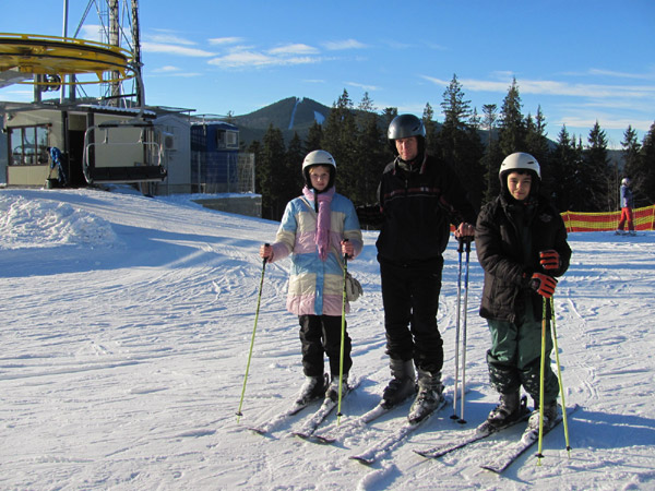 Поиграли, потанцевали, уже и поели...но мы ведь ехали кататься! Три часа дня уже...А положительного ответа всё нет и нет! Мы решили взять на прокат несколько пар лыж и научить детей по-очереди основам техники передвижения на лыжах. Так день и пролетел. Пора возвращаться в наше уютное место дислокации, где нас ожидал вкусный и горячий обед переходящий в ужин, теплое общение и здоровый сон.