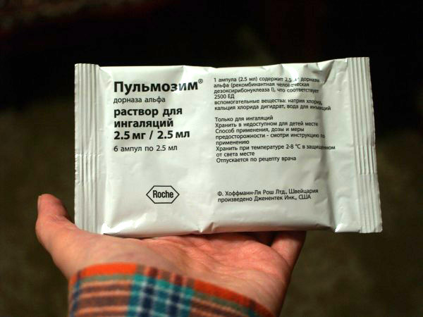У больных муковисцидозом мокрота чрезмерно вязкая. Настолько вязкая, что ее очень сложно откашлять. Она забивает легкие и становится благоприятной почвой для инфекций. Обычные отхаркивающие препараты мало помогают таким больным. Но есть препарат пульмозим, способный "разбивать" вязкую мокроту этих больных. Препарат очень эффективный, радикально улучшающий состояние больных с МВ. Продлевающий их жизнь. Делающий ее легче и лучше. Дающий возможность дышать. Но… стоящий около 2050 грн. за одну пачку, в которой 6 ампул. Это – на 6 дней лечения. А нужен пульмозим 365 дней в году, всю жизнь.