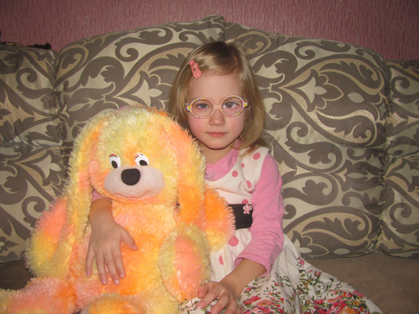 В феврале 2010 года, когда Поле было почти 4 месяца, ей провели операцию экстракции катаракты (удалили хрусталик) в киевском офтальмологическом отделении ОХМАТДЕТа. Назначили очки (+10 на левый глаз, правый – 0), линзу на левый глаз и окклюзию на несколько часов в день (закрывать здоровый глаз, чтобы тренировать больной).