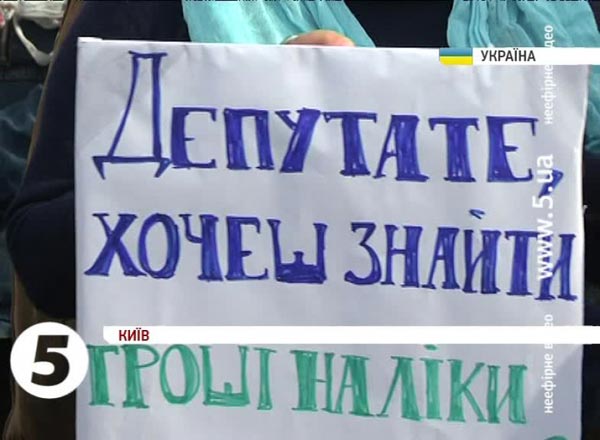 Депутатам пацієнти передають вимогу – припинити ходити по тілах тяжкохворих і дати гроші на ліки. Для переконливості разом із вимогою вручають статистику. Щодня через брак коштів на лікування в Україні помирають понад півтори тисячі людей.
