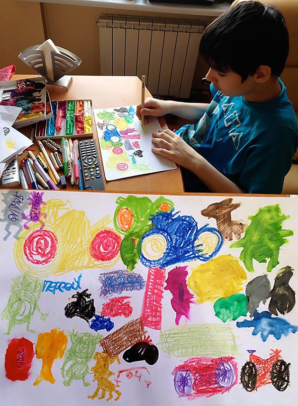 После отмены лекарств он стал проявлять интерес к миру, больше рисовать, у него появились свои интересы. Август стал обучаемым и подолгу мог удерживать внимание на каком-то одном виде деятельности. Спасибо за это специалистам Центра «Наш солнечный мир», с которыми Август занимался два с половиной года. Две поездки в летний лагерь, кинезотерапия, иппотерапия, дефектолог, соматосенсорная терапия и другие занятия дали нам очень много.