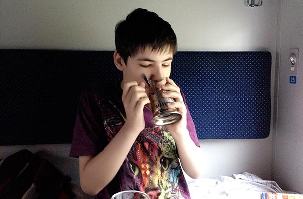 Он ничуть не испугался, в самолете попросил iPad. У него там любимая программа GarageBand, где можно услышать звучание разных инструментов. Нравится ему музыка, я и поставила эту программу. А через некоторое время случайно увидела, что сын сам освоил многоканальную запись: записывает любимую песню из телевизора, потом наговаривает на другие дорожки фразы из мультиков, накладывает звучание гитары, бас-гитары, барабанов… Потом слушает, как это вместе звучит.