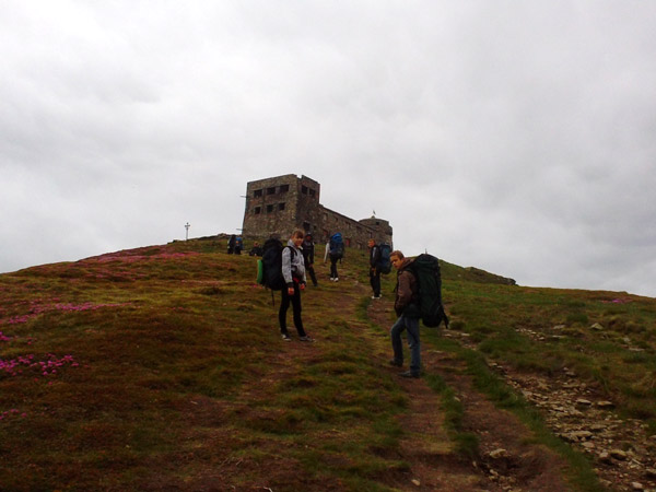 На следующий день наша небольшая группа отправилась к горе Поп-Иван Черногорский (высота – 2020 м). Находящаяся на её вершине заброшенная обсерватория «Белый слон» будоражила наше воображение. Это здание, которое мы с расстояния в несколько километров могли наблюдать в окружении облаков, напоминало сказочный замок или дом с привидениями. При подходе к вершине погода стала ухудшаться, заморосил дождь, а температура не превышала 5 градусов выше нуля. Достигнув вершины, мы обошли всю обсерваторию снаружи и изнутри. Это уникальное сооружение на высоте 2020 м было построено в 1938 году поляками, а в 1939 г. перешло под контроль Советского Союза. Этот утопический проект предполагал гостиницу, собственную электростанцию, самораздвигающийся медный купол, конференц-зал. Можно представить, сколько усилий потребовалось, чтобы доставить на вершину массу стройматериалов и возвести здание в условиях, аналогичных Сибири. К сожалению, обсерватория проработала совсем недолго, и после войны перестала использоваться по назначению.