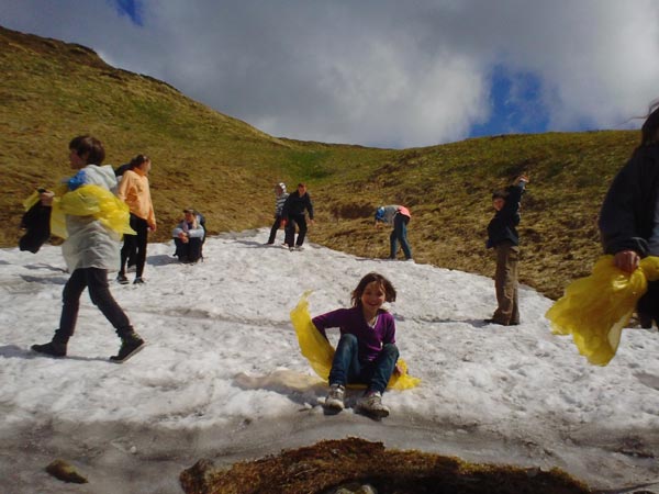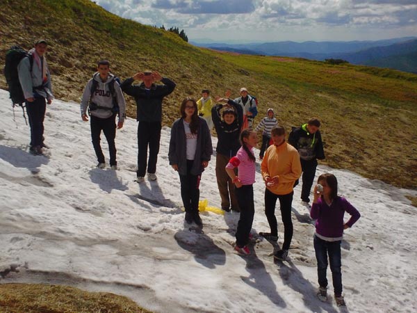 В первый день мы совершили поход от турбазы Заросляк к озеру Несамовытому (7,5 км в одну сторону). По пути ребята любовались великолепной природой Карпат, потихоньку привыкая к прохладному и влажному климату. Некоторые даже рискнули искупаться в озере. От Несамовытого часть группы вернулась в лагерь, а остальные, более активные и жаждущие приключений ребята прошли назад по Черногорскому хребту. С южной стороны хребта нас порадовала солнечная и тёплая погода. К радости детей, мы набрели на небольшой участок сохранившегося снега. 15 июня дети катались на снежной горке, температура воздуха была около 20 градусов тепла, и вокруг цвела черника и эдельвейсы!