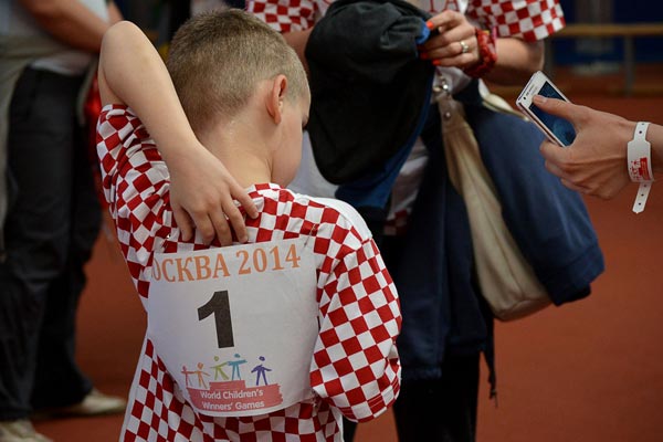 Я решила, что речь идет о подростках. И вот за несколько минут до торжественного открытия Игр на футбольной арене в спортивном комплексе ЦСКА я ищу глазами эту удивительную пару детей, победивших рак. А победителей таких много — 450 ребят из 14 стран: Армении, Белоруссии, Болгарии, Венгрии, Германии, Индии, Казахстана, Латвии, Молдавии, Сербии, Украины, Турции, Хорватии и России. На трибунах сидят болельщики — родители, сотрудники, волонтеры и друзья разных благотворительных фондов. Они уже растянули свои плакаты, например, такой: «Мы верим, мы знаем, морозовцы — сила, наша Морозовка непобедима!» Или вот: «Татарстан — чемпион, побеждает только он!» Первый плакат посвящен, конечно, детям, победившим рак в московской Морозовской больнице, второй — сборной команде детей, подопечных одной из сильнейших благотворительных организаций России — татарского фонда имени Анжелы Вавиловой.