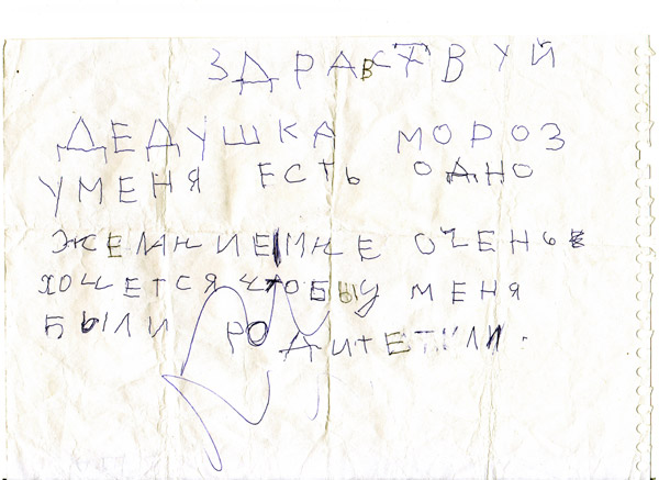 Он уже не маленький, но верит в сказку. А потому, когда его товарищей начали забирать в Америку, спросил, что ему сделать, чтобы его тоже забрали. И добрый человек посоветовал Саше написать письмо деду Морозу и отдать мне, а я передам деду Морозу, чтобы тот подарил ему семью. Теперь в каждый мой приезд в интернат парень спрашивает, когда уже у него будут мама и папа…