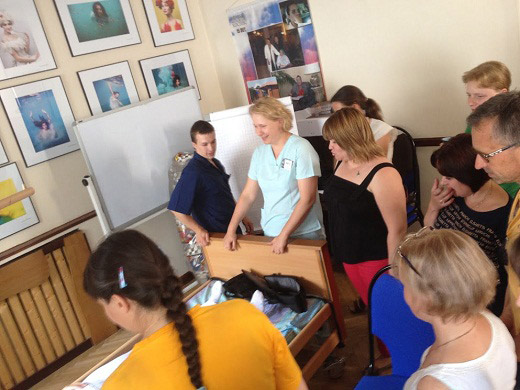 27 августа 2014, 12:50 1782 Автор: Фонд «Вера» hospicefund.ru Три дня няни, координаторы и медсестры, а также коллеги из центра лечебной педагогики, фонда «Детский паллиатив» и медицинской службы «Милосердие» тренировались друг на друге – как правильно переворачивать, поднимать и сажать пациента