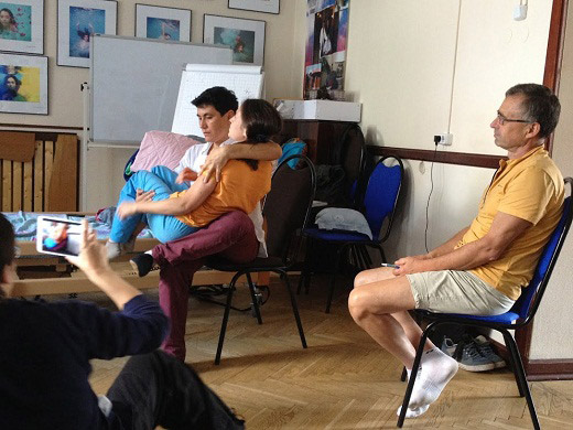 В минувшие выходные в Первом московском хосписе прошел уже второй семинар по физической терапии, который провели Илона Абсадзе и Екатерина Клочкова. Три дня няни, координаторы и медсестры (все те, кто ездит к детям домой и помогает им), а также коллеги из центра лечебной педагогики, фонда «Детский паллиатив» и медицинской службы «Милосердие» при Марфо-Мариинской обители в Москве тренировались друг на друге – как правильно переворачивать, поднимать и сажать пациента.