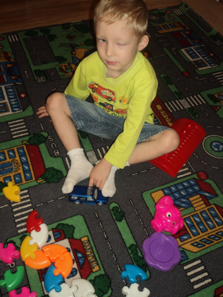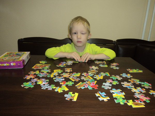 Максим очень тихий и спокойный ребёнок, он очень любит рисовать и собирать пазлы. К сожалению, из-за проблем со зрением, он мало проводит времени с остальными ребятами, совсем не играет в подвижные игры. Мальчик редко бывает на улице, у него слабый иммунитет, он часто болеет, за последний год, практически не выходил из больниц.
