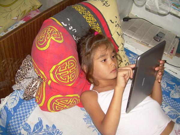 Девочка освоила планшет, который ей подарил крестный, с удовольствием играет в кота Тома. Увидев мой смартфон, просит посмотреть, клацает иконки на рабочем столе, радуется (конечно, ведь у ее мамы телефон самый простой). Рисует старыми красками, лепит что-то свое. Мама мечтает отдать Катюшу в центр развития для детей-аутистов «Диалог», но это стоит 900 грн. в месяц, что для их маленькой семьи является недоступной роскошью. Кстати, ни компьютера, ни фотоаппарата у семьи нет, фотографировали девочку и писали о ней волонтеры.